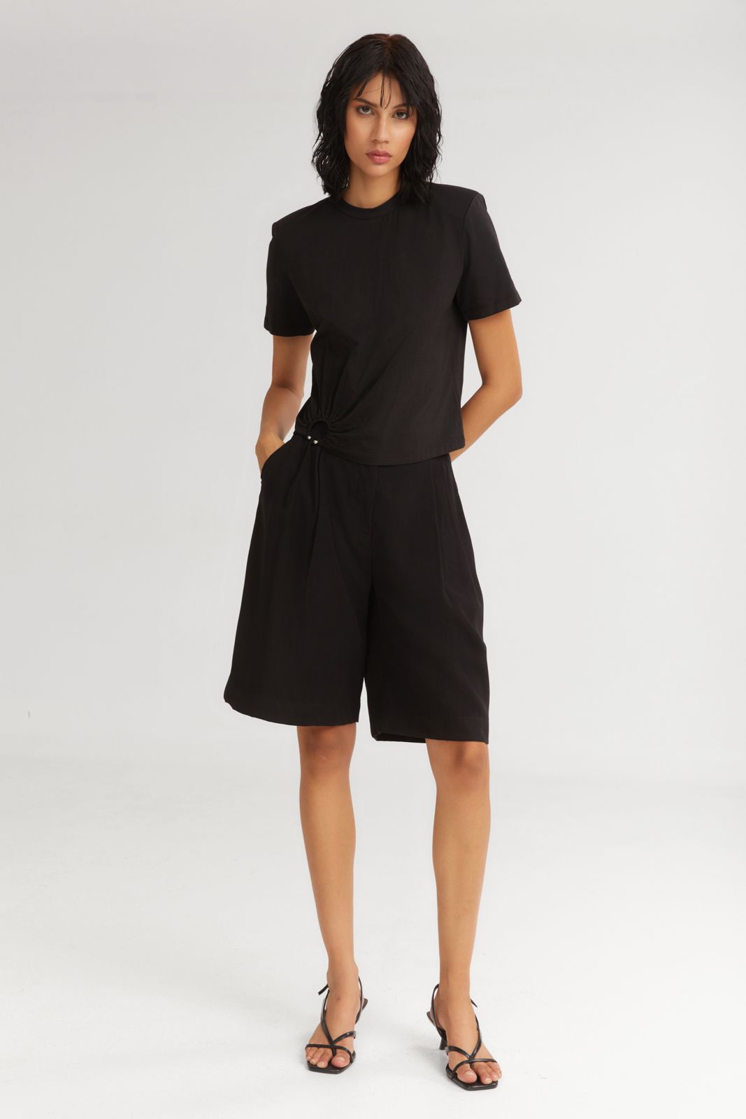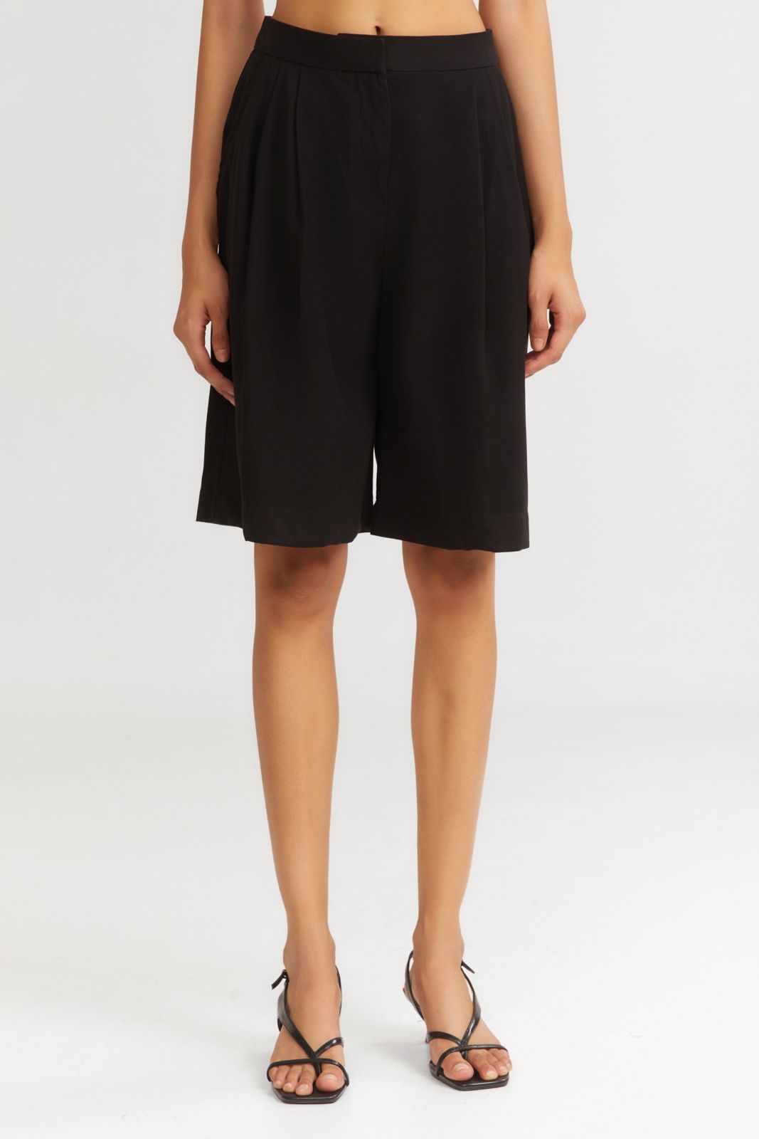 Brave the day in perfectly practical wear like the Melted IceCream Vermuda Black featuring pleats to emphasize their tailored look, side slit pockets, and a hidden button.
