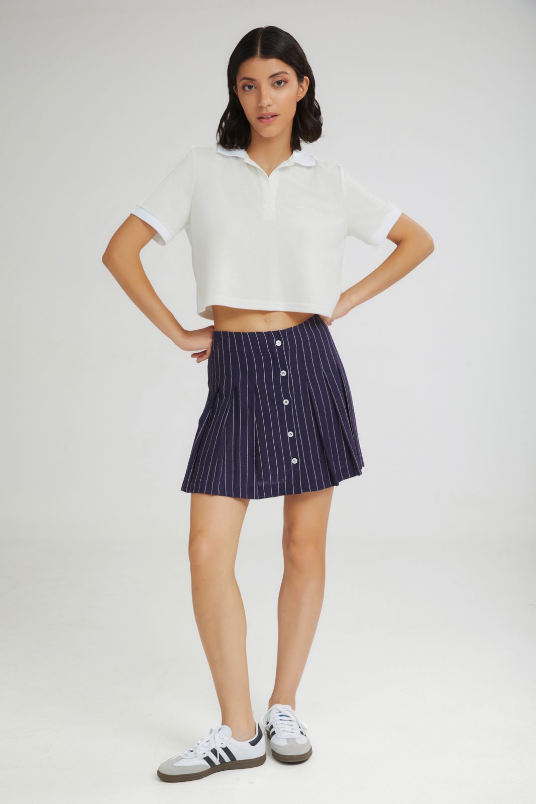 A cropped polo top, our Popsicle Polo Top White, made from a super soft fabric that offers both comfort and style. Its simple fit and gentle texture make it perfect for everyday wear, with a subtle and sophisticated vibe.