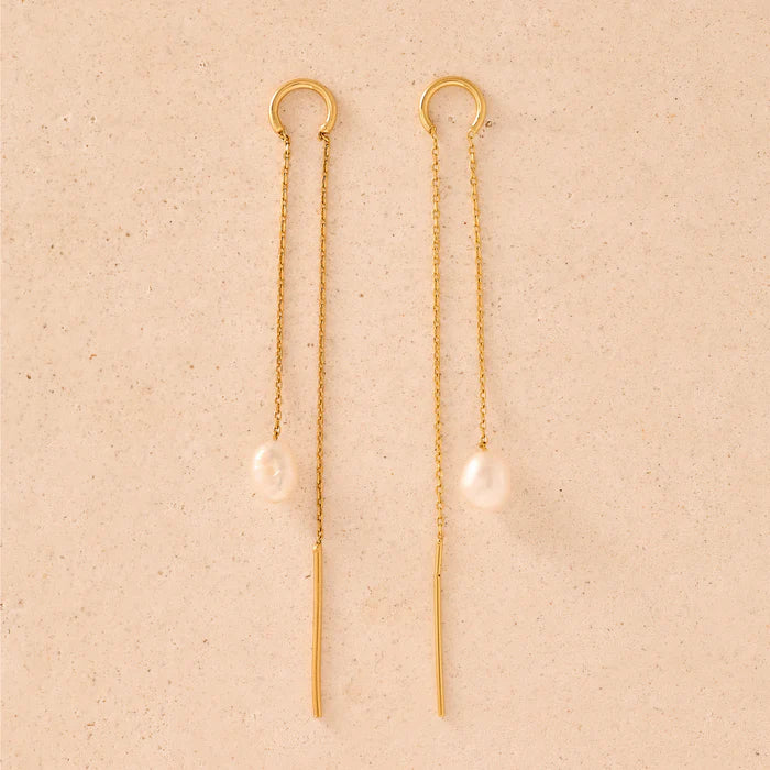 A bold reimagining of our Ariane threader earrings, with a striking freshwater pearl and a softly curved loop to keep the thin chain secure.