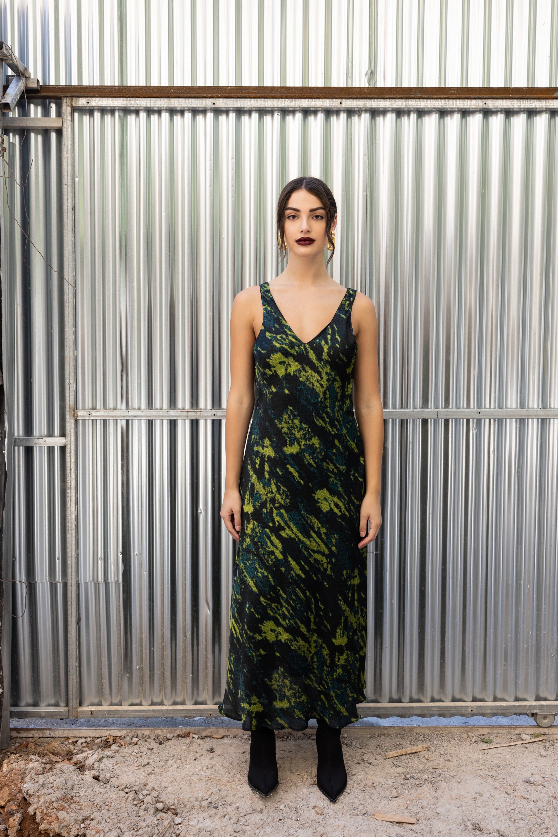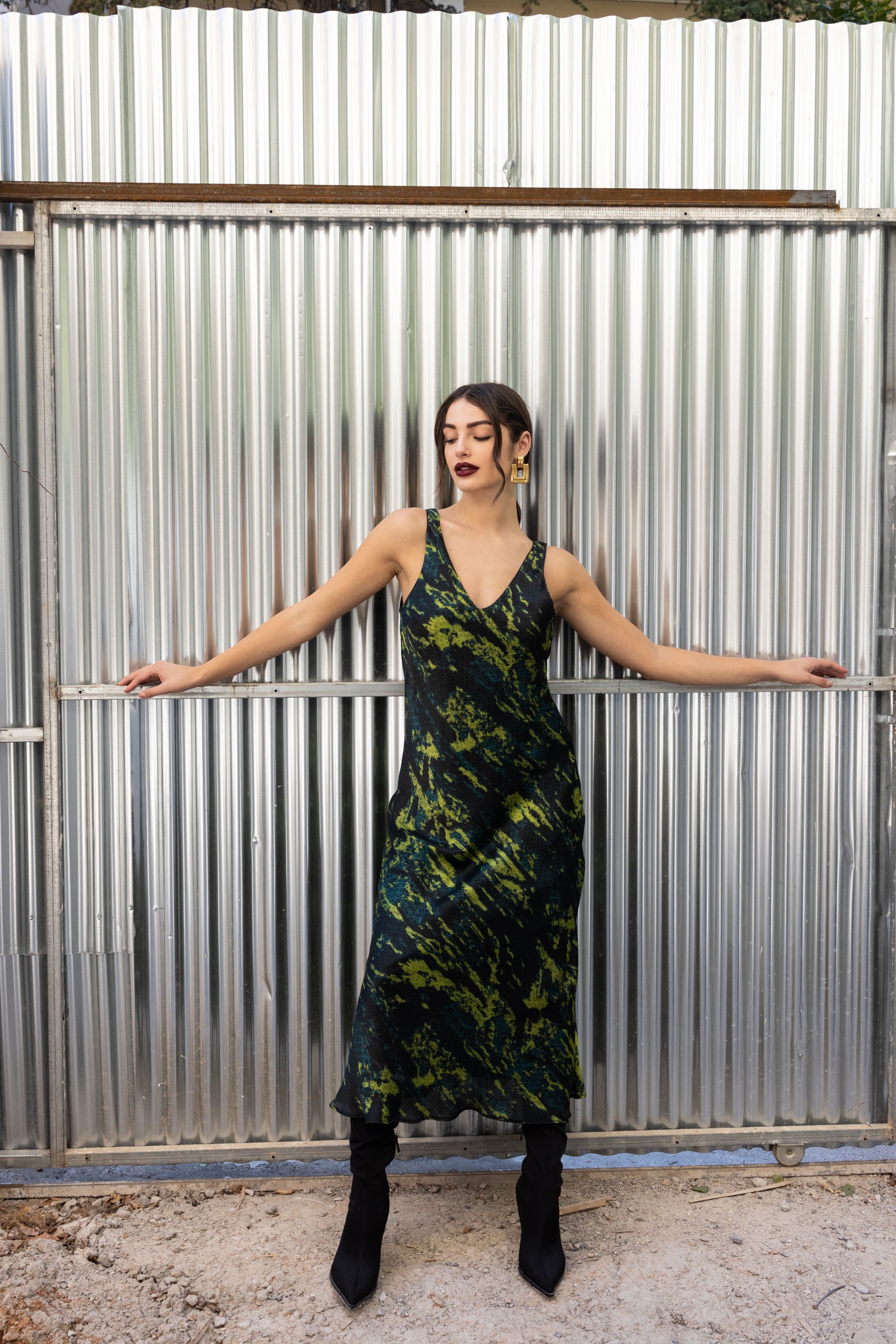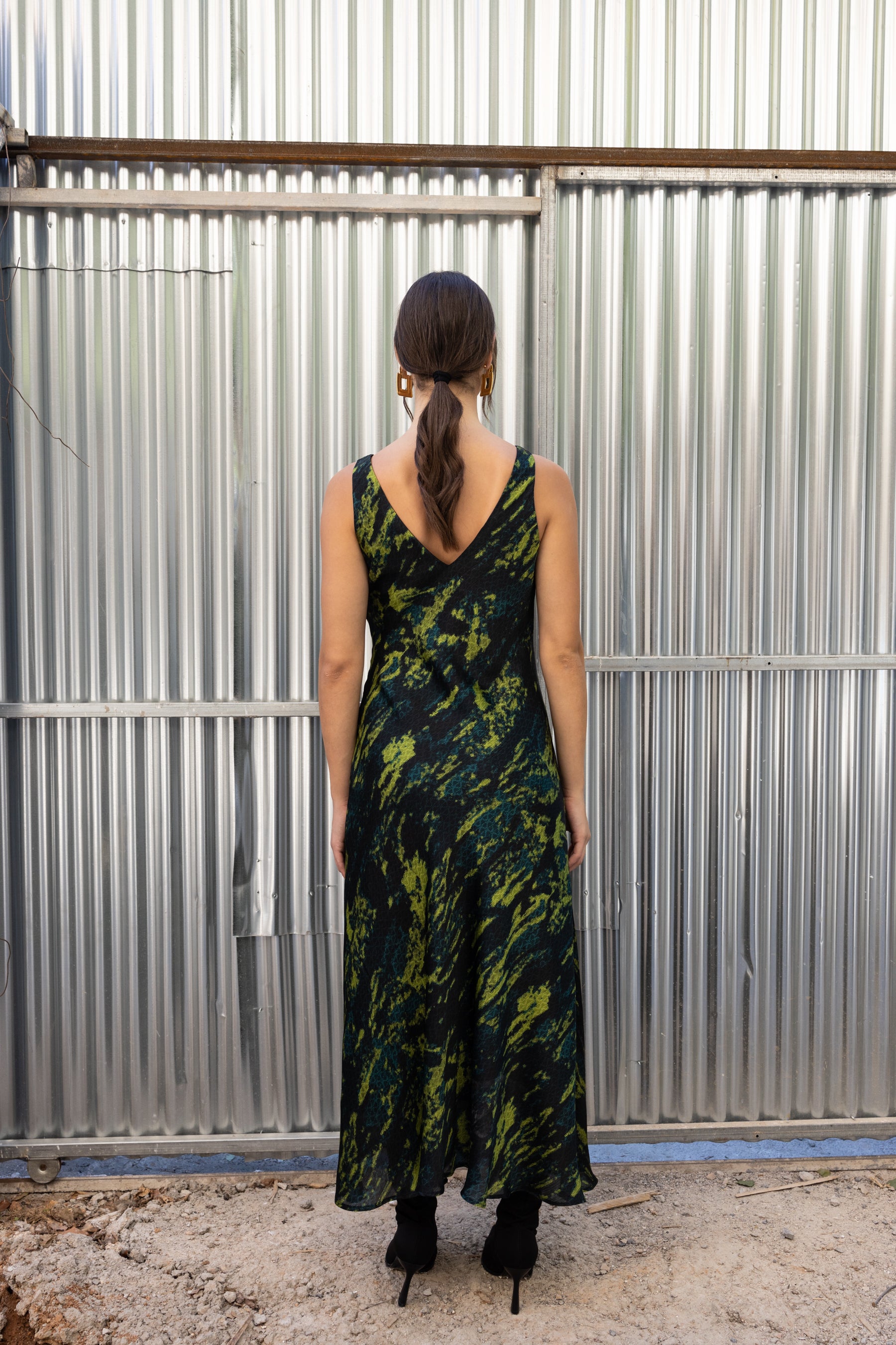 Featuring a V-neckline and sleeveless design, this midi dress will take you from day to night.