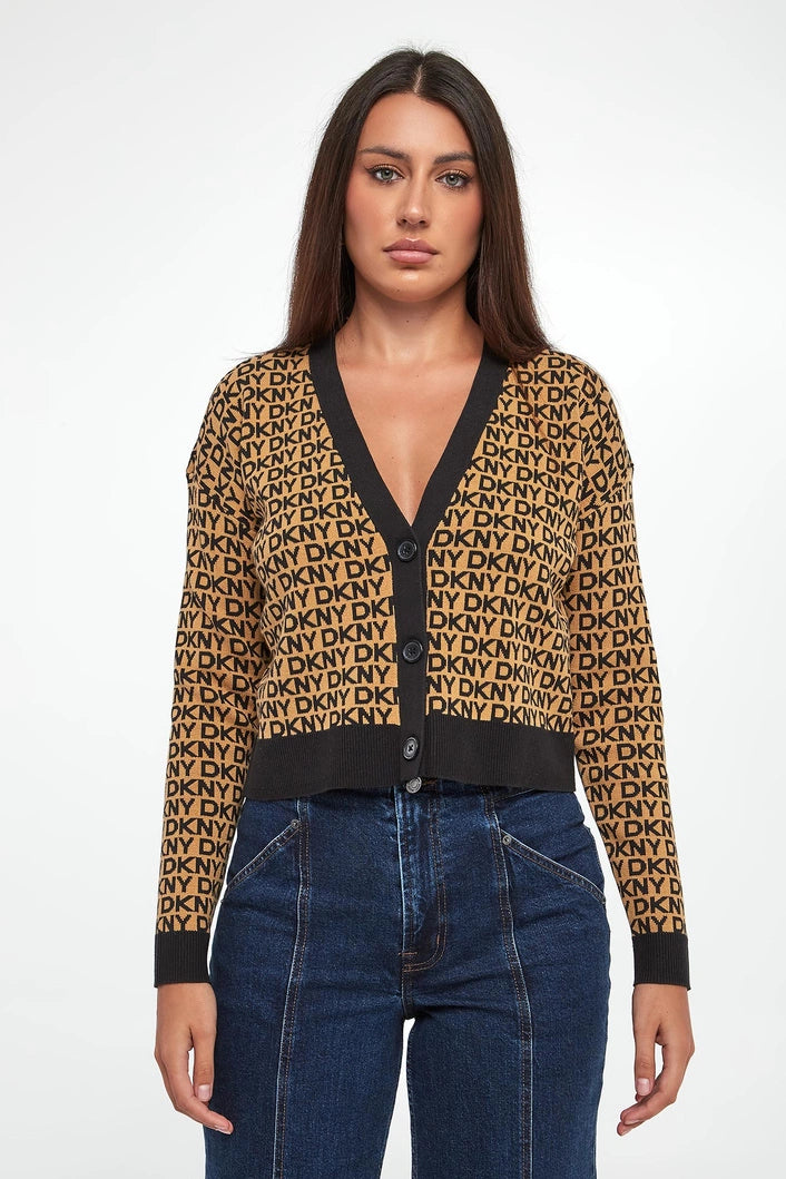 DKNY - Logo Jacquard Long Sleeve V-Neck Cardigan