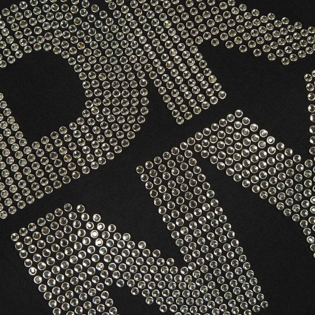 DKNY Jeans women's black t-shirt in stretch cotton with rhinestone DKNY logo detail on the chest.