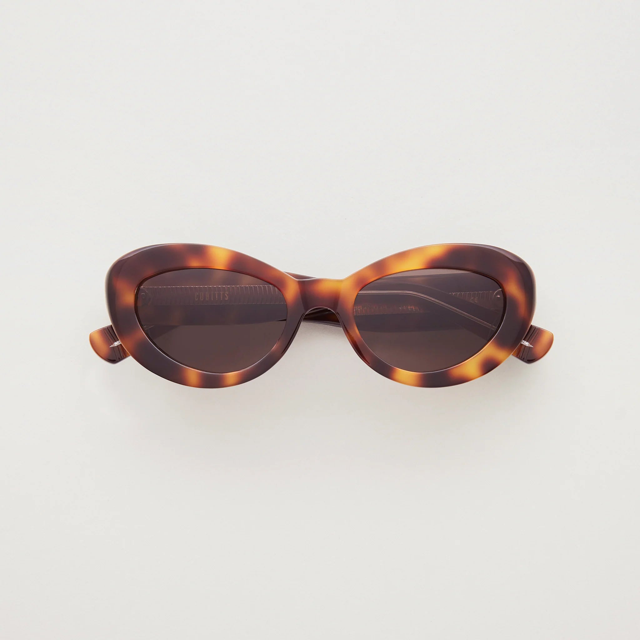 Sleek and shapely. A ‘wrap’ frame with lugs bent to a 110º angle, punctuated by an extended ellipsis of double dot rivets. An undulating browline swept up and around, and a lens shape somewhere between bug and cat eye. A little bit French New Wave (think Jean Seberg in Breathless), a little bit rebellious (think Miles Davis).