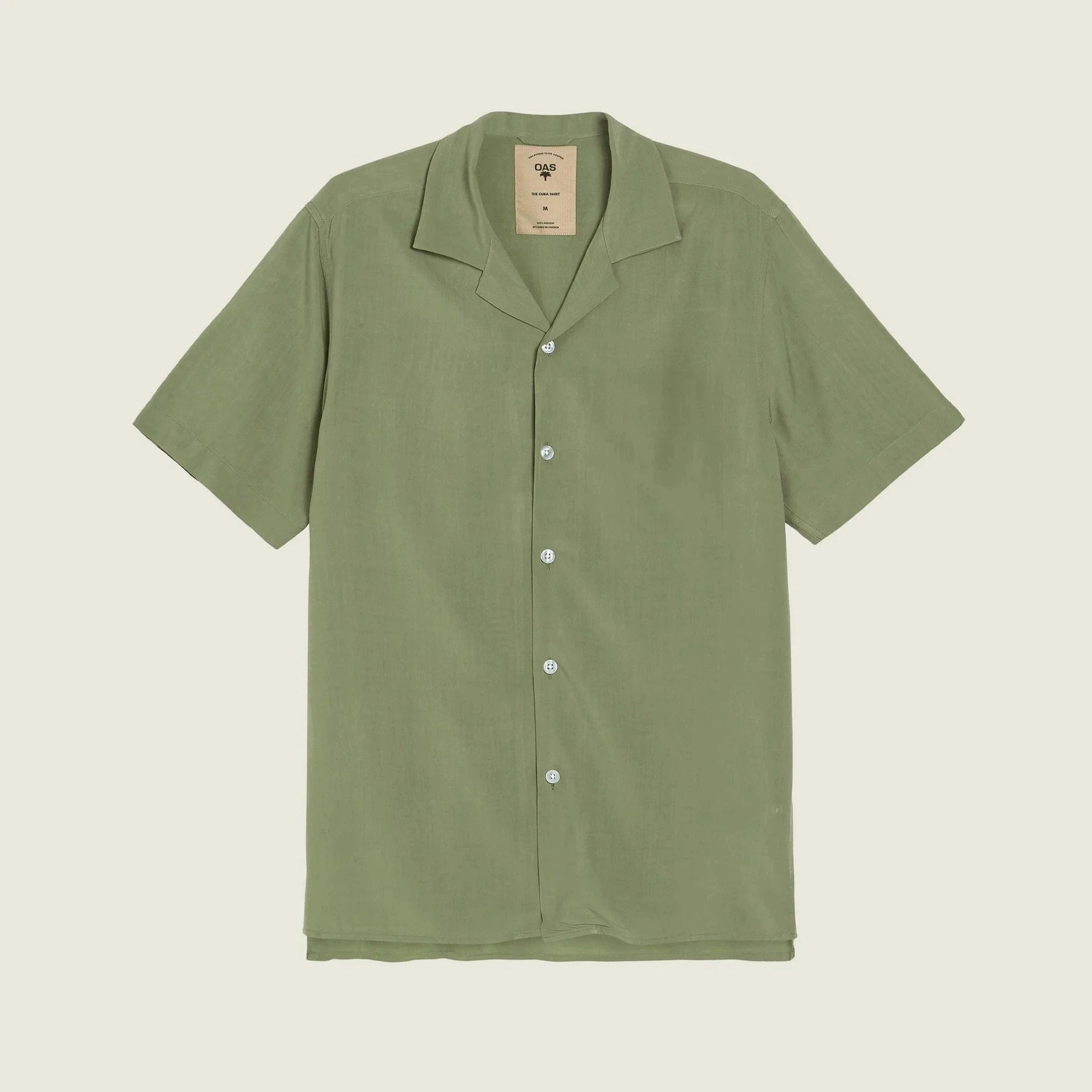 The Green Plain viscose shirt is an easy-going fit with a resort collar that extends into a buttoned front. Tailored from a breezy viscose fabric characterized by a silky soft feel, ideal for warm-weather lounging.