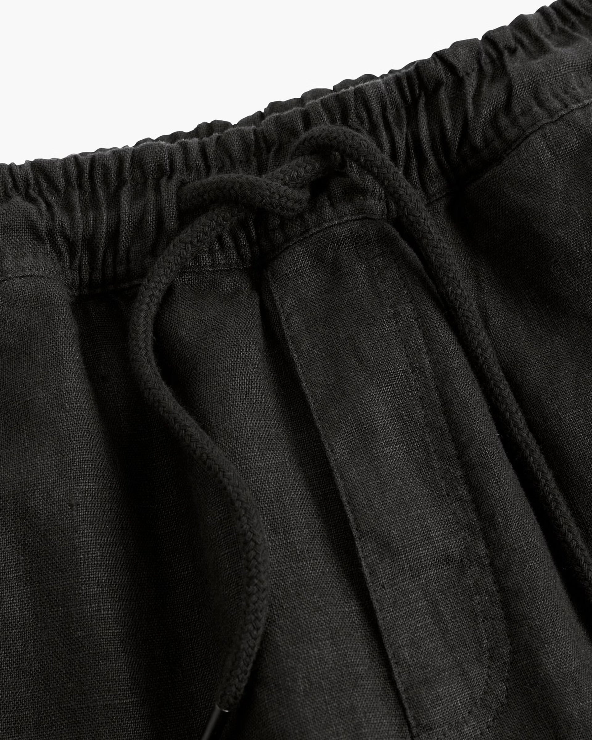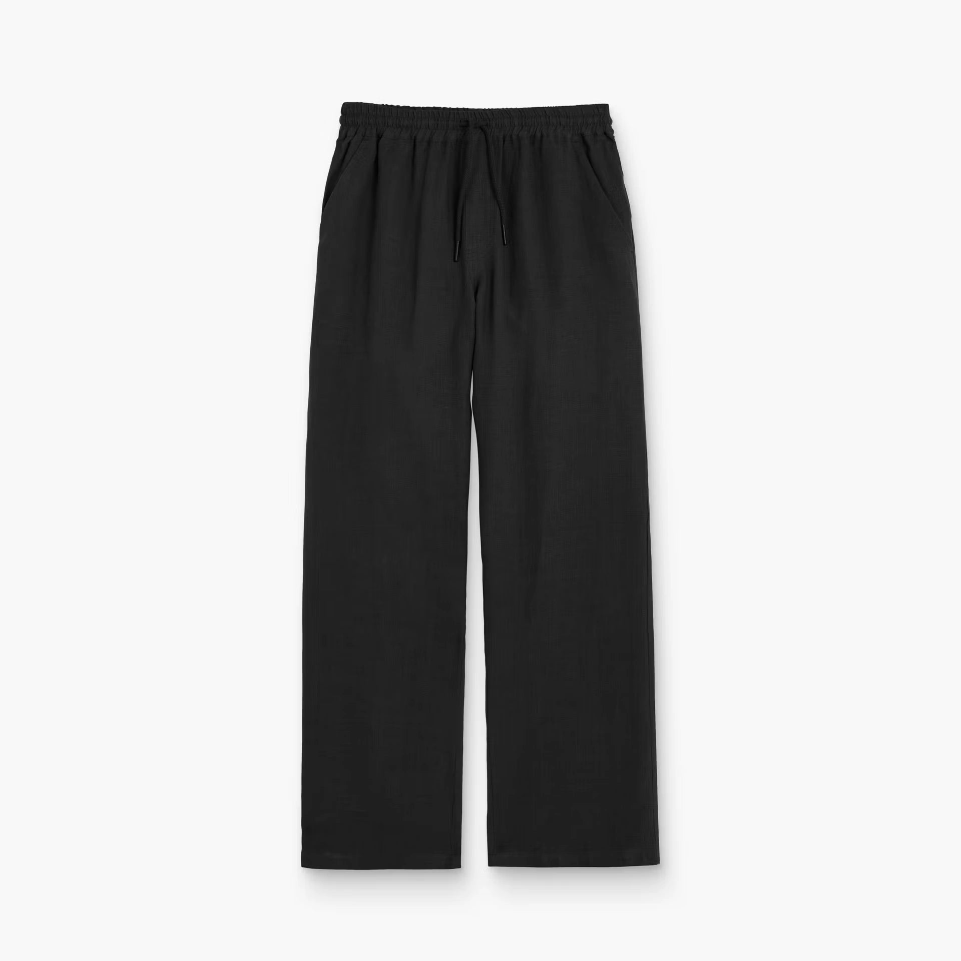 Black linen pants in midweight wovened linen. Regular fit, elastic waist. One welted pocket and one patch pocket at the back.