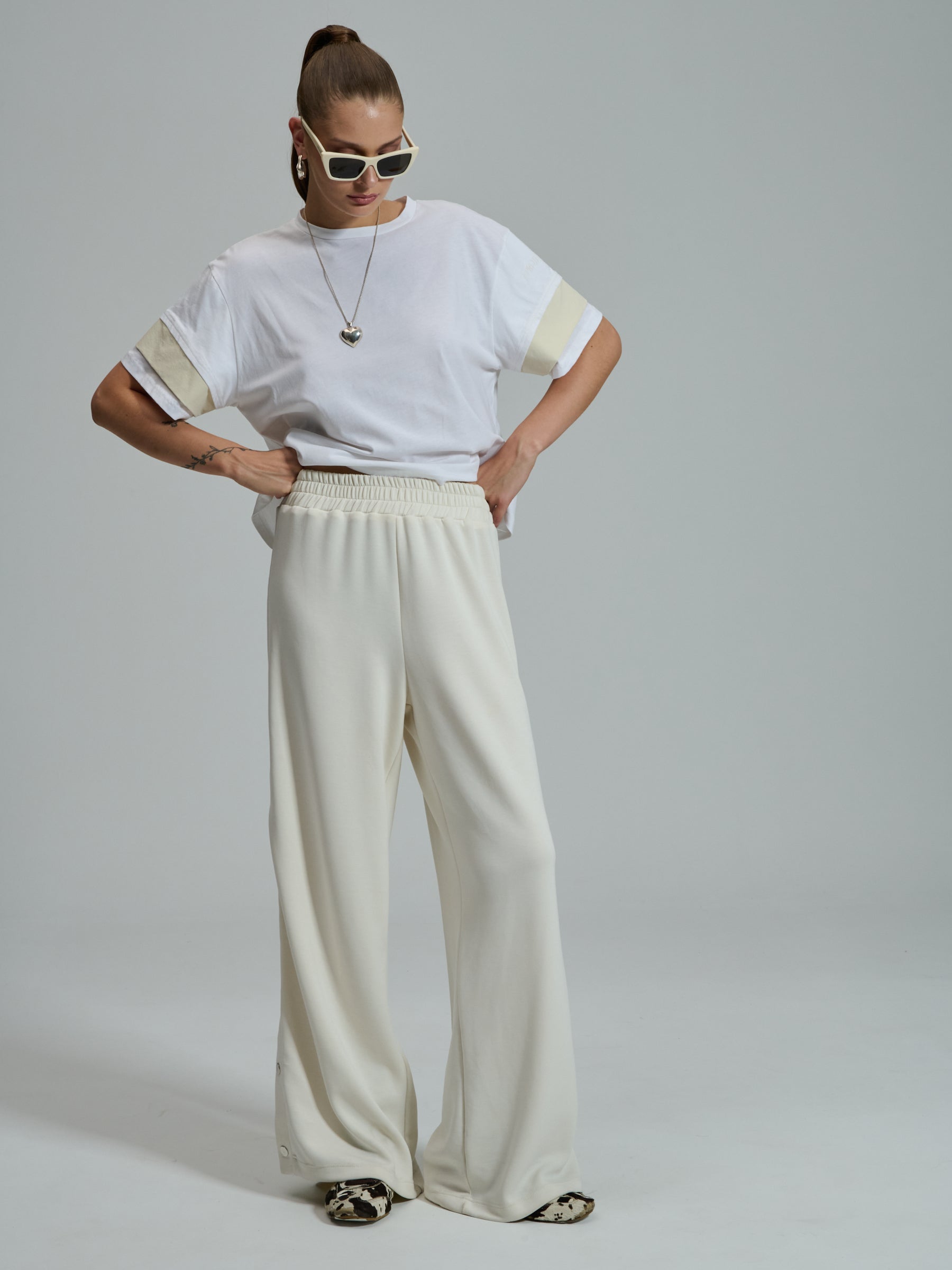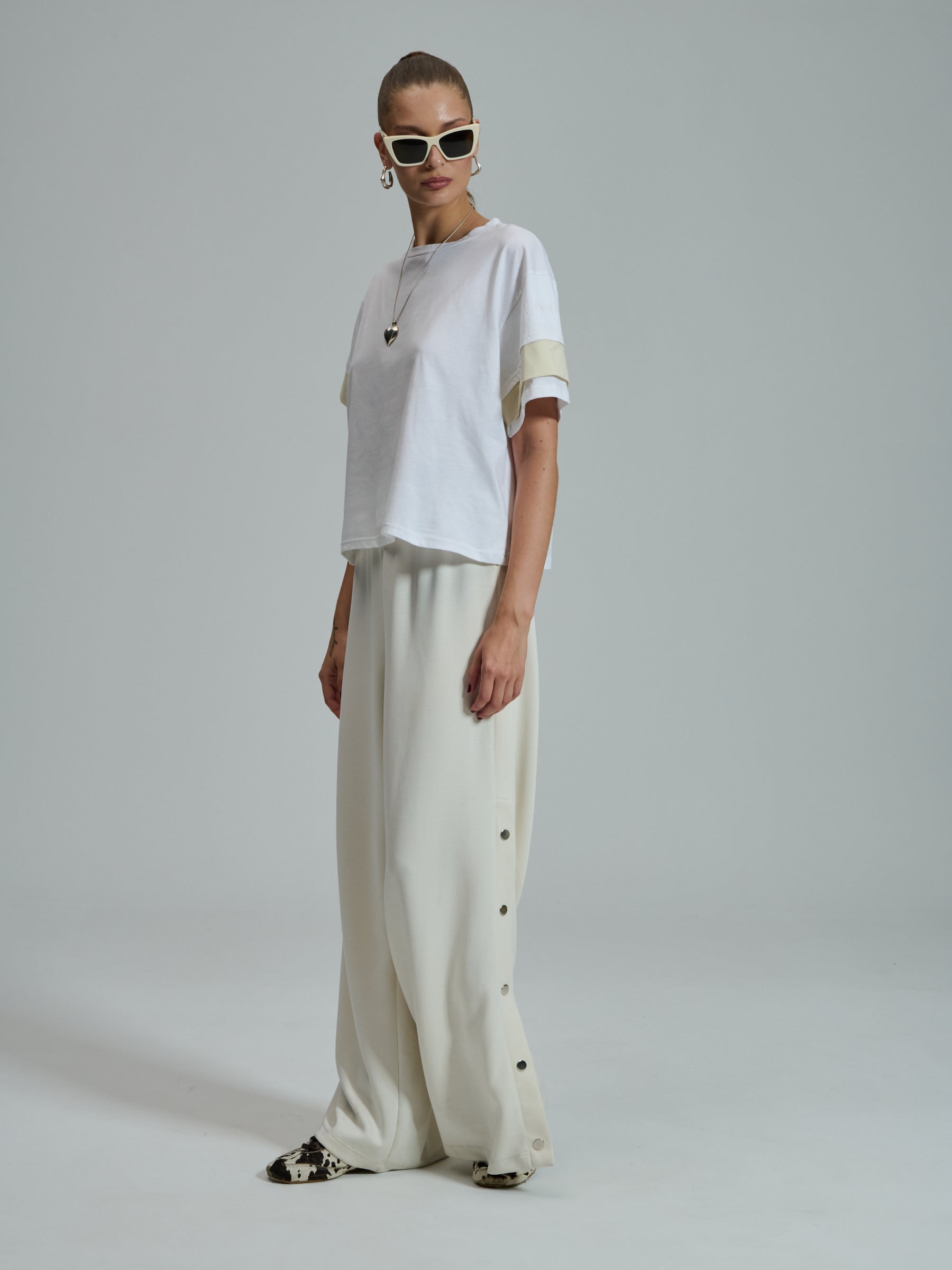 The PROJECT SOMA Assunta T-shirt is made of cotton jersey, featuring nylon details on the sleeves. Boxy cropped T-shirt.