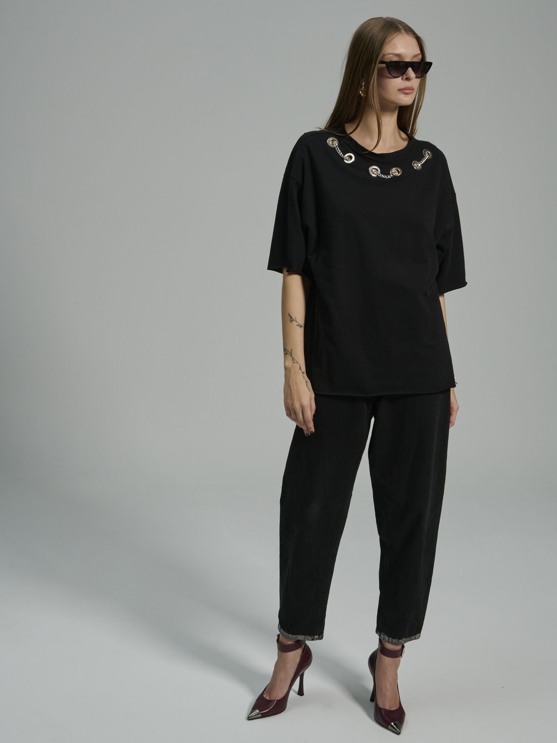The PROJECT SOMA Rosina T-Shirt is made of brushed cotton fabric. An oversized t-shirt featuring stud details and a detachable chain.