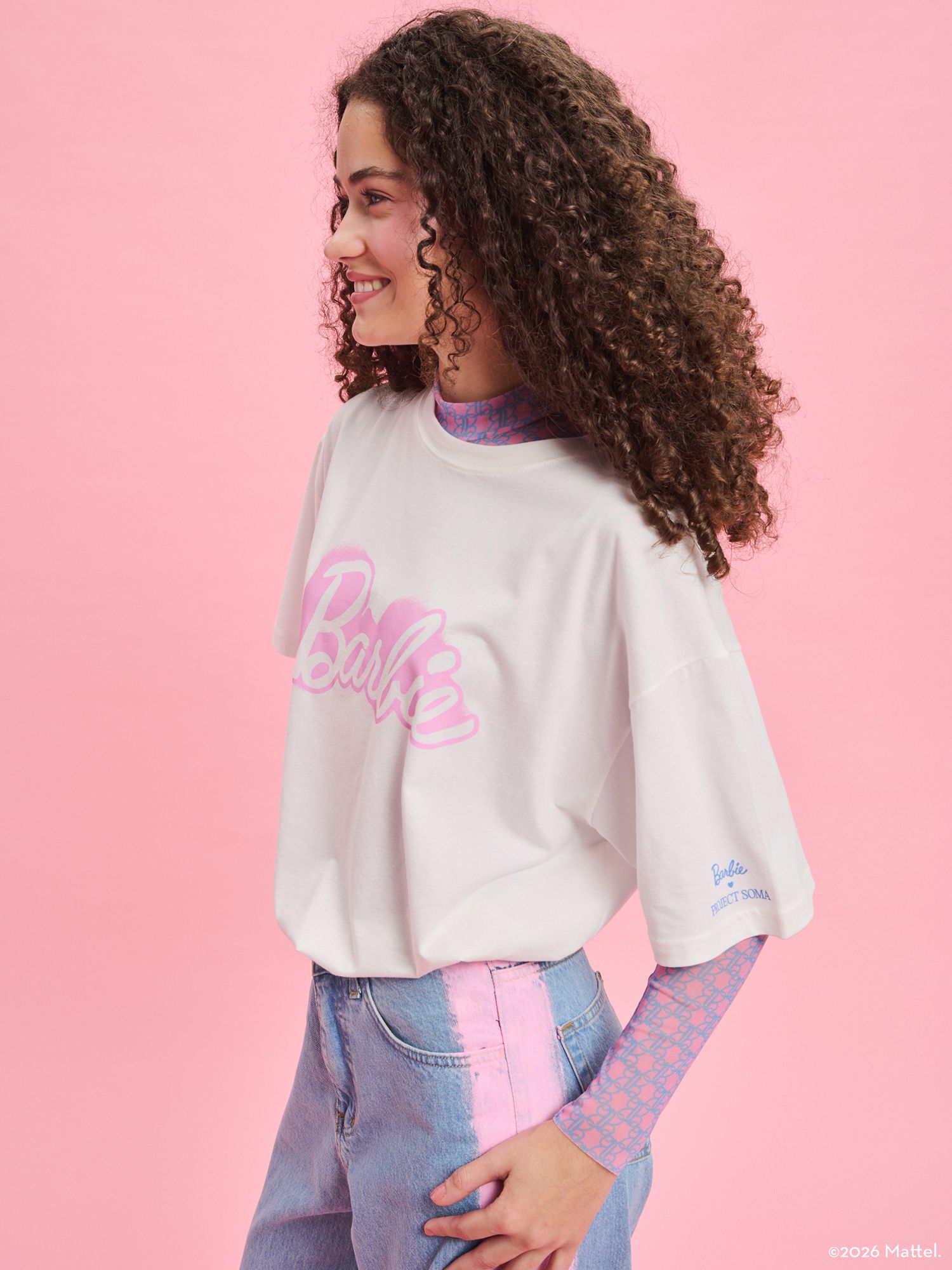 The Barbie X Project Soma Vibrant T-Shirt is crafted from cotton jersey fabric. Oversized T-shirt featuring prints on the front, back, and sleeve.