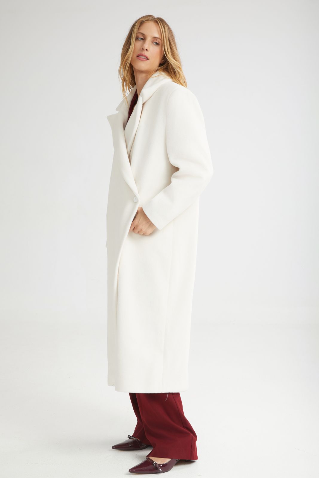 A magnificent Overcoat in white. Soft and premium, it promises elegant looks for every occasion.